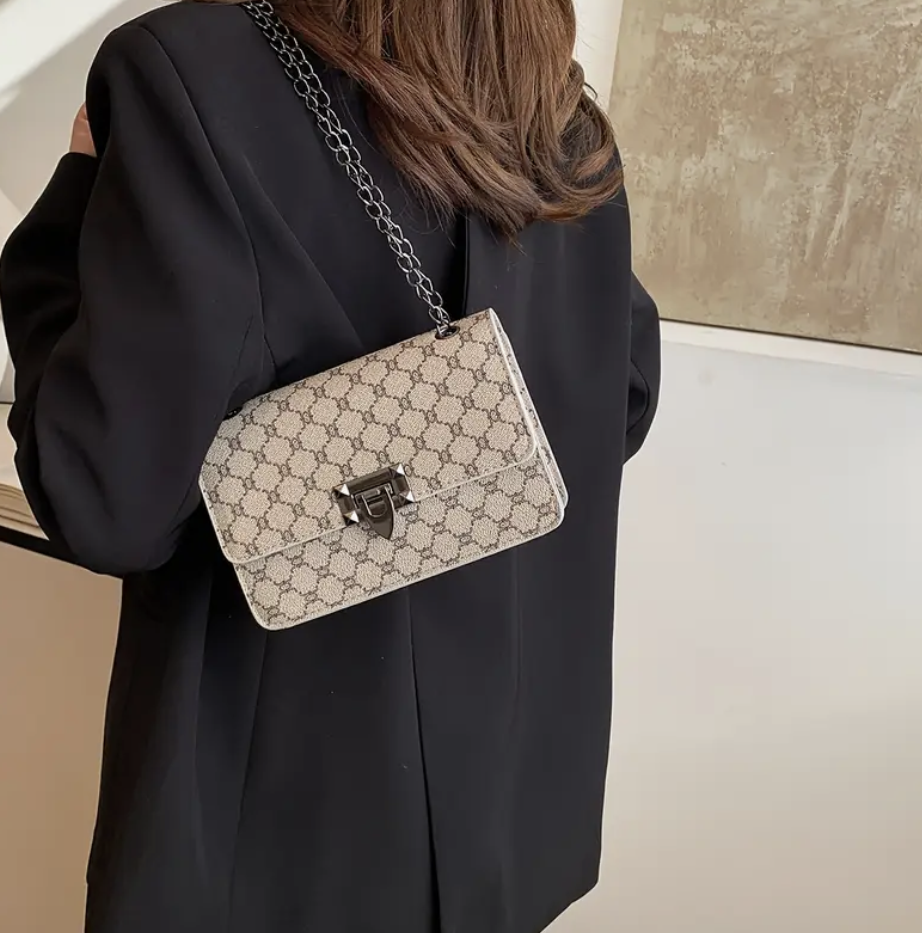 Sac à Épaule Élégant en Cuir PU Blanc de Grande Capacité avec Motif Géométrique