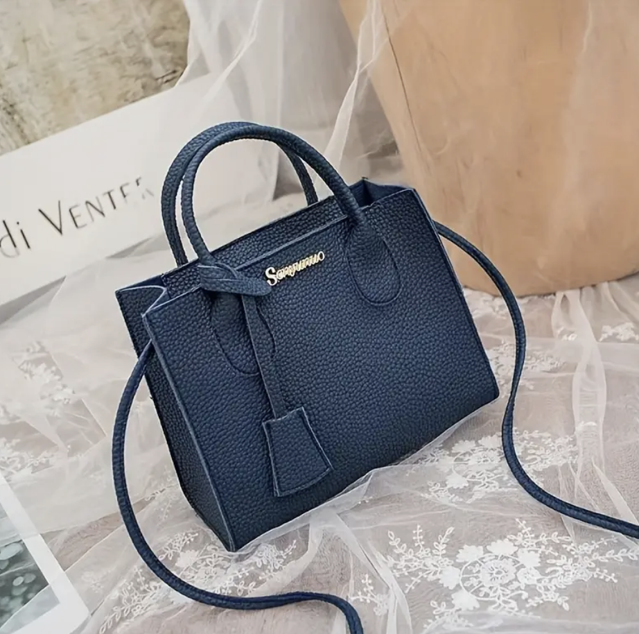 Sac bleu foncé, chic avec écriture doré, glamour et élégant