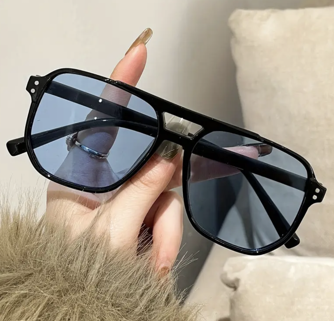 lunette avec bordure noir et verre bleu, parfaite pour l'hiver !