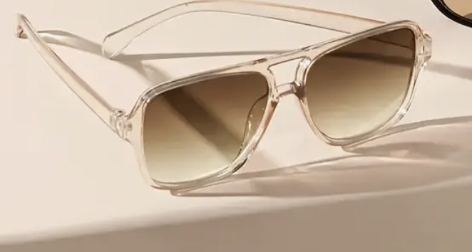 Lunette carré, avec bordure claire et verre noir gris, élégant et class, à la mode !